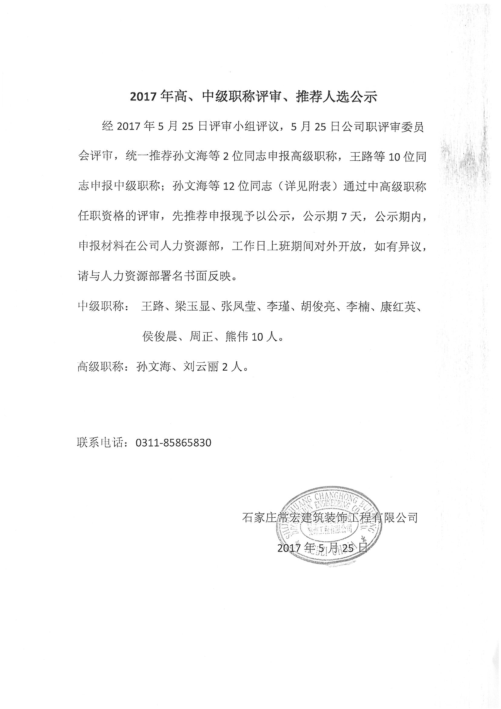 常宏裝飾高中級(jí)職稱公示文件