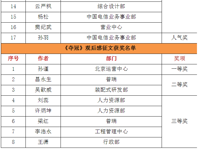 獲獎(jiǎng)名單