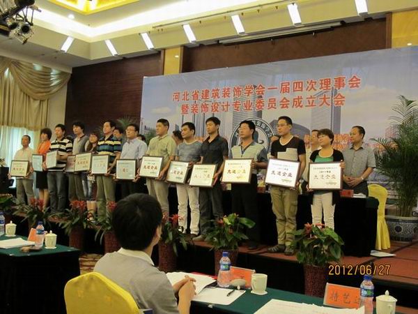 2012年6月27日河北省建筑裝飾學(xué)會組織召開第一屆第四次理事會暨裝飾設(shè)計專業(yè)委員會成立大會,會上對榮獲2011年河北省建筑裝飾行業(yè)先進企業(yè)、優(yōu)秀企業(yè)家進行了表彰,常宏裝飾也又一次被評為2011年河北省建筑裝飾行業(yè)先進企業(yè),王躍總經(jīng)理被評為優(yōu)秀企業(yè)家。省學(xué)會會長、秘書長及各副會長單位領(lǐng)導(dǎo)為獲獎單位進行了頒獎。